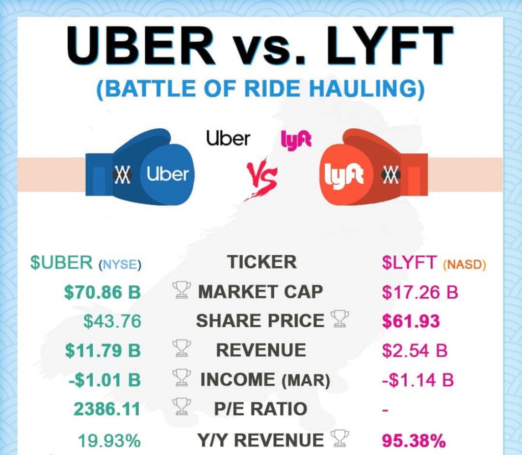When these two ride-sharing companies had there IPOS, we knew that we wanted to invest in one of them. After extensive research, Chopper and I agreed that Uber would be the ride-sharing company of the future. Uber serves not only the United States and Canada but provides service in many cities worldwide, including those in the European Union, Central and South America, Africa, Asia, Australia, and New Zealand. Uber is also more user-friendly and is in more locations then Lyft. Uber currently controls a majority of the market share for ride-hailing applications. As of March this year, Uber controlled 68% of the market, while Lyft only had 32%. Uber has a brand advantage as well. Uber is also at the forefront of autonomous driving, which will change the way we travel forever. Another positive feature of Uber is Uber eats, which is their food delivery service that is gaining more popularity every day. Overall, Me and Chopper think that our investment in Uber will be profitable over the next 10 years and will be a stepping stone for us to experience Financial Freedom.